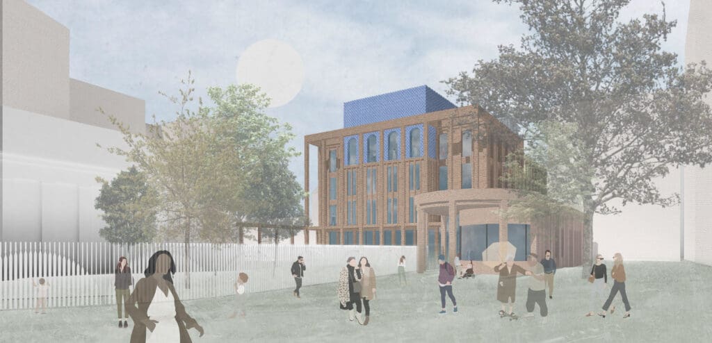 Unsere Teilnahme am Wettbewerb für den Neubau Jüdisches Zentrum Synagoge Fraenkelufer in Berlin-Kreuzberg. Der Entwurf kombiniert historische Elemente wie die Säulen der alten Synagoge mit modernen architektonischen Akzenten und schafft einen offenen Raum für die Gemeinde. Das Gebäudeensemble nutzt nachhaltige Materialien und integriert die erhaltene Jugendsynagoge sowie neue Freiräume wie einen Vorplatz, der als Begegnungszone […]
