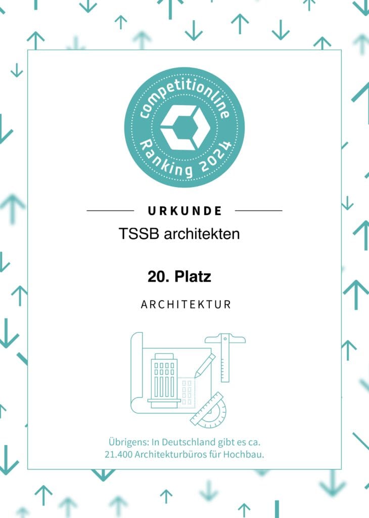 Competitionline gratuliert TSSB zu brillanten Ideen, Durchhaltevermögen und einem großartigen Team. Platz 20 von 21.400 Architekturbüros in Deutschland.