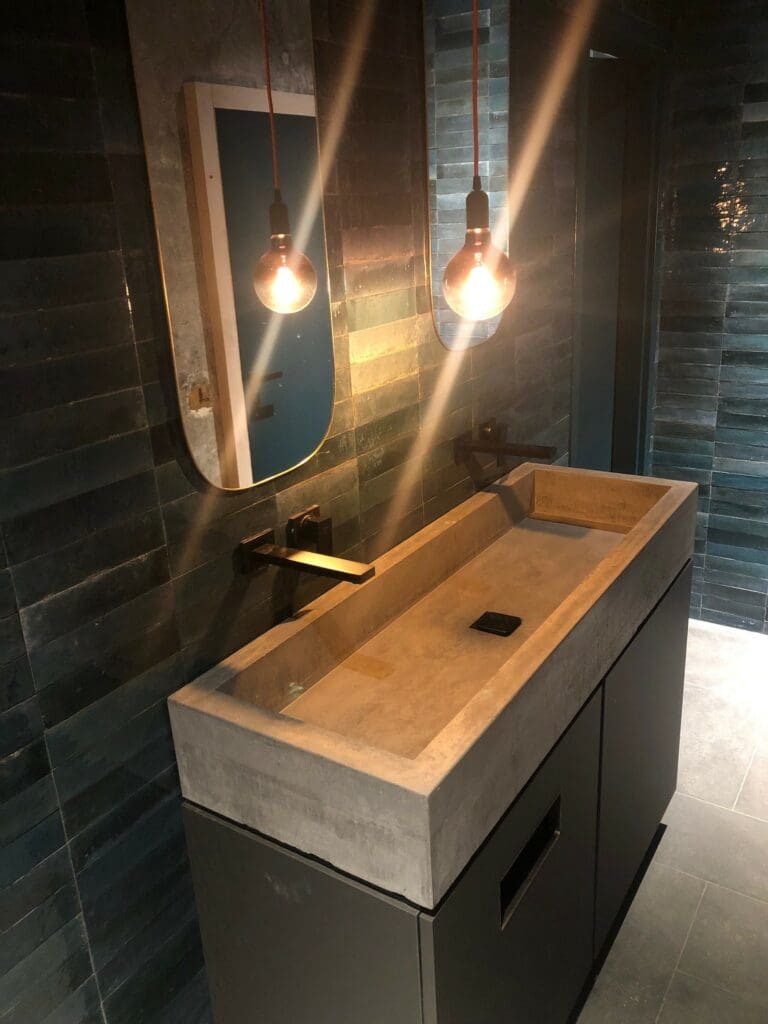 In unserem neuen Berliner Standort haben wir unser eigenes Betonwaschbecken gegossen. In Ermangelung einer passgenauen Lösung, die gut mit unseren Subway-Tiles harmoniert, hat das Berliner Team kurzerhand eine eigene Lösung entworfen und wir finden: Das Ergebnis überzeugt.