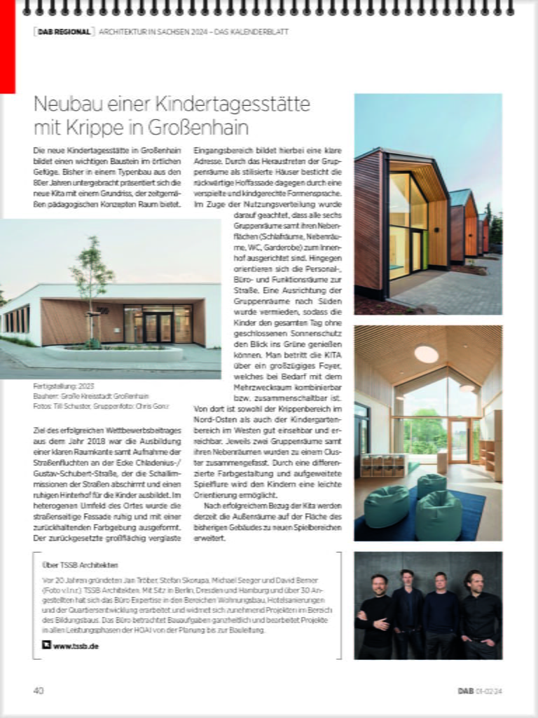 Kita Großenhain wird im Deutschen Architektenblatt 2024 vorgestellt.