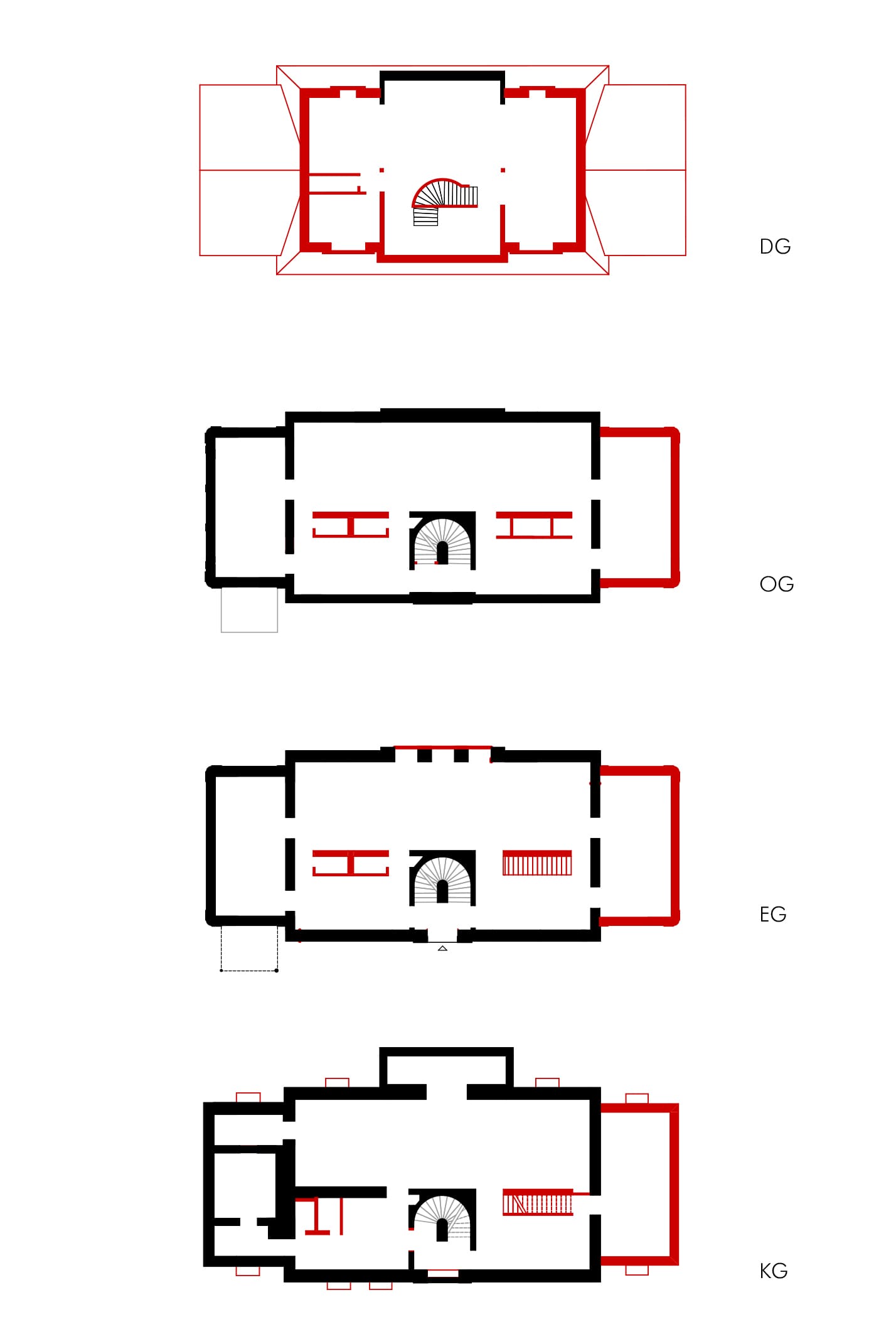 Durch die Spiegelung des rechten Seitenanbaus, entsteht eine 3-teilige Gliederung und bildet nun eine Symmetrie.