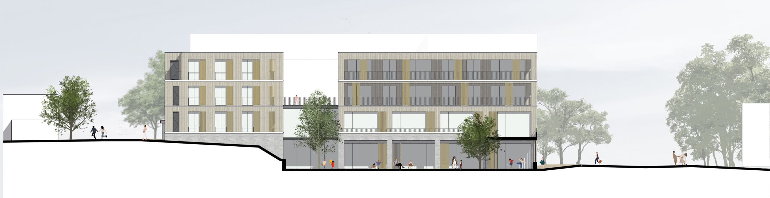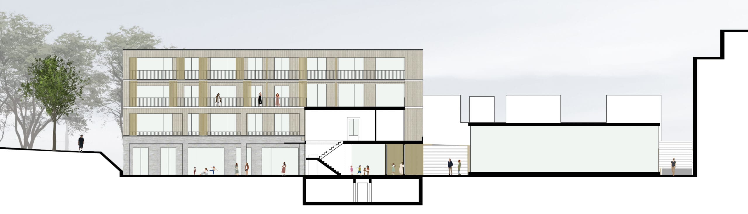 Ein Wettbewerbsgebäude mit Mischnutzung von Wohnen und Kinderbetreuung