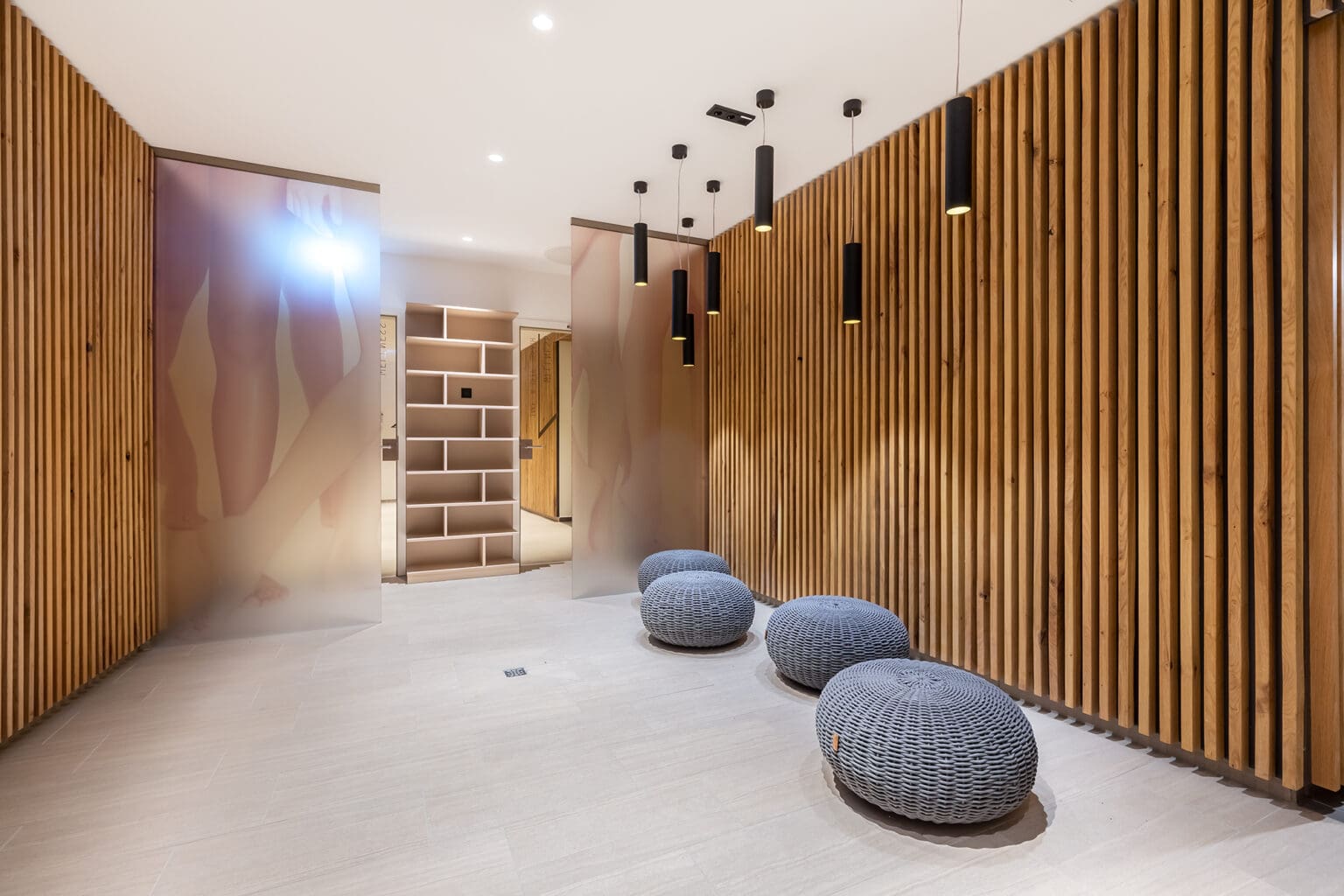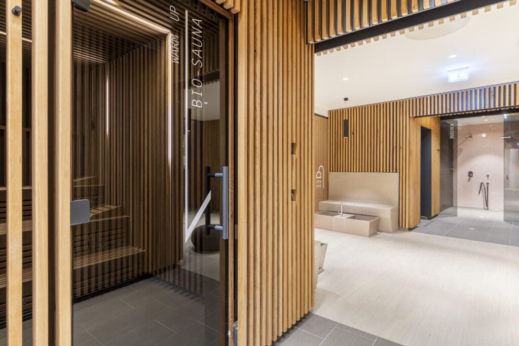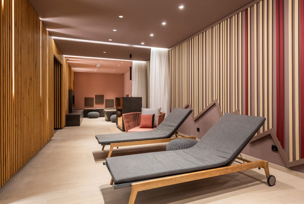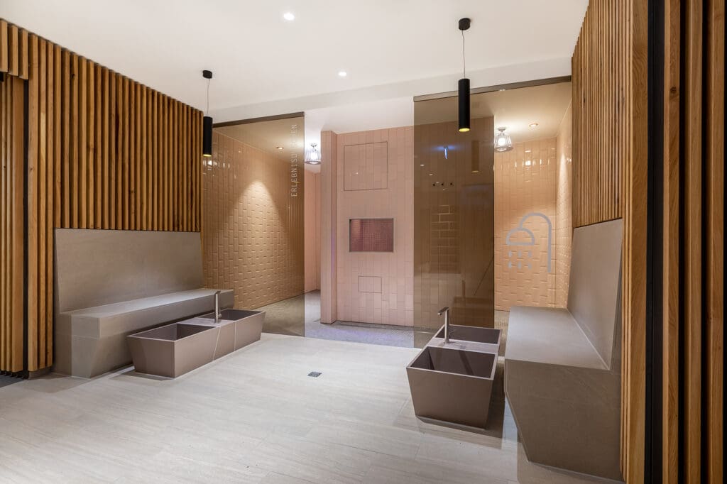 Das im Oktober 2020 eröffnete die Apartmentanlage „Upstalsboom Godewindpark Travemünde“ Im Ostseeheilbad Travemünde überzeugt nicht nur durch seine Architektur, sondern auch durch eine umfangreiche SPA-Landschaft mit Ruhebereich, Finnischer Sauna, Biosauna, Dampfbad, Fußbad, Erlebnisduschen und Eisbrunnen.­­ Das Farbkonzept interpretiert verschiedenste Hauttöne in der Freikörperzone und wird durch stärkere Akzente ergänzt. Dabei stimmt ein fließender Übergang, von hell zu dunkel, den Besucher von der Aktivität in die Kontemplation ein und erinnert an den Horizont der maritimen Lage.