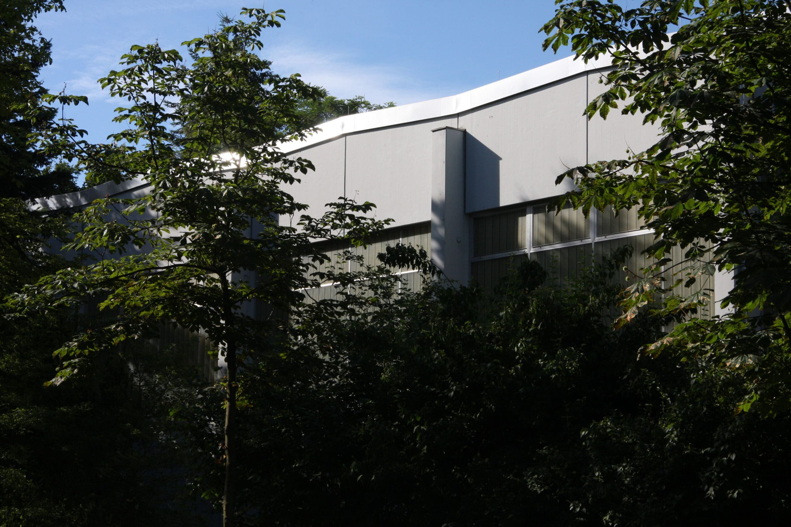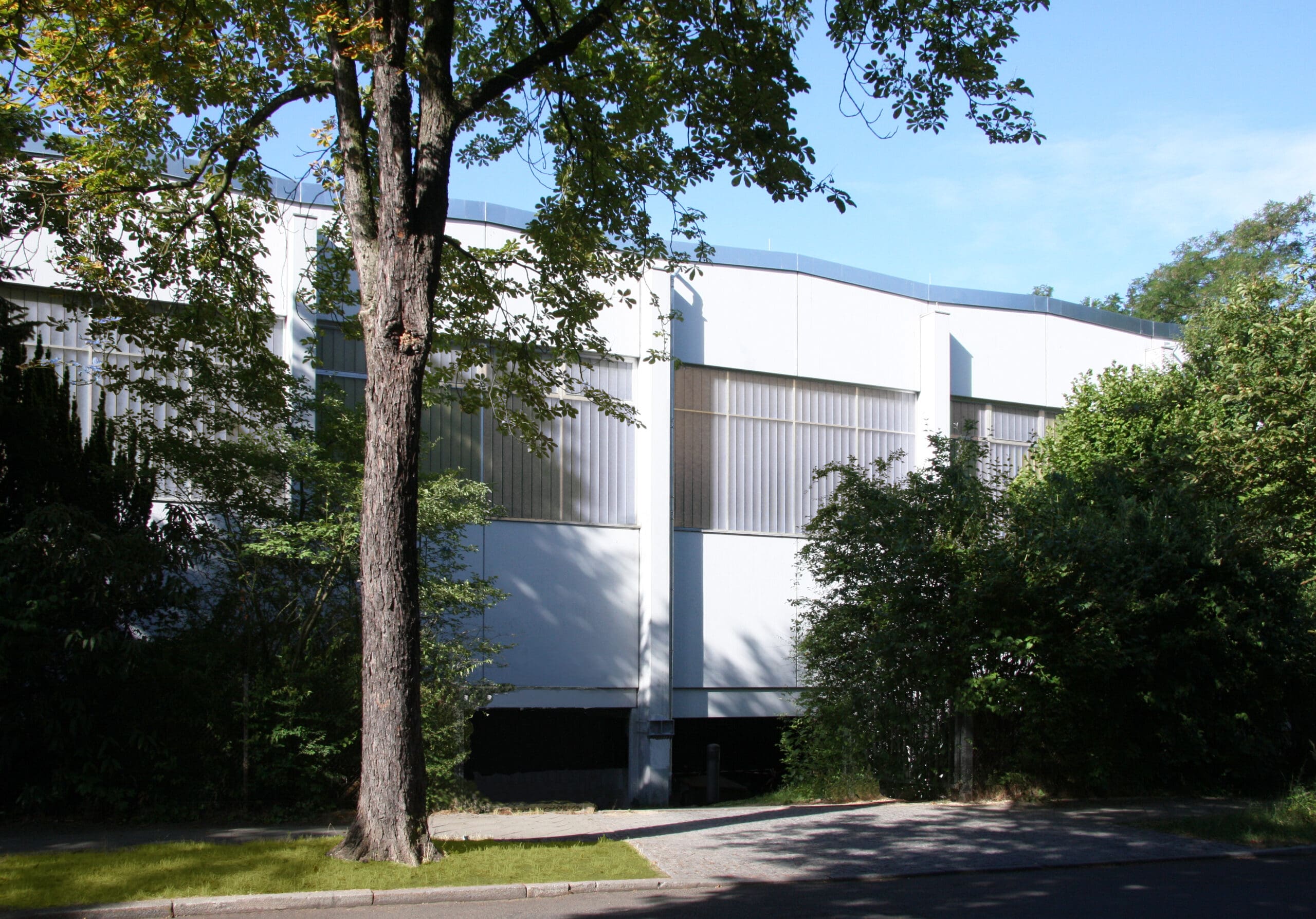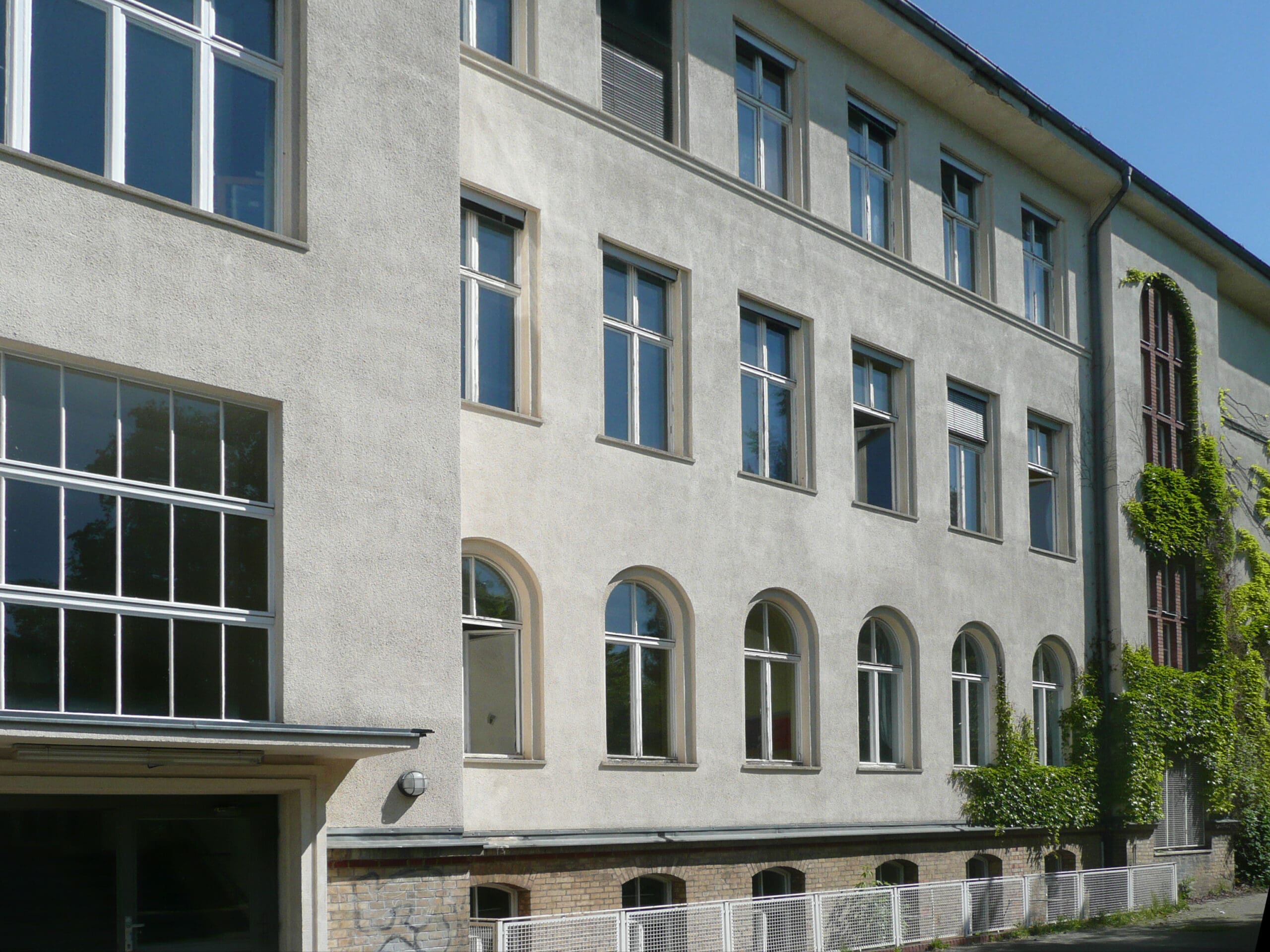 Die durchgeführte Sanierungsmaßnahme umfasst eine Teilsanierung des gründerzeitlichen Schulhauses sowie die Sanierung der 1982 errichteten Sporthalle in mehreren Bauabschnitten.Bei der Flachdachsanierung der Sporthalle wurden alle Beläge erneuert, die Gefälle- und Entwässerungssituation den aktuellen Erfordernissen angepasst und eine Dämmung gem. aktueller Energie Einsparverordnung verbaut.Die Ertüchtigung des Tragwerkes war erforderlich und wurde im Bereich der Spannbetonbinder, der Dachkonstruktion und der Tiefgarage durch Betonsanierungsarbeiten sichergestellt.In der Tiefgarage wurde die CO2 -Warnanlage erneuert und die Grundleitungen instandgesetzt. Ebenfalls erneuert wurden die Holzfenster. Die Innen- und Außentüren wurden zur Verbesserung des baulichen Brandschutzes überarbeitet.In den Fluren und Umkleiden wurden schadstoffbelastete Unterdecken erneuert, in der Halle wurde der Prallschutz erneuert und Sportgeräte sowie Tore instandgesetzt.Im Schulhaus wurden die historischen Holzfensterkonstruktionen denkmalgerecht erneuert. Der Sonnenschutz und die Verdunklungsanlagen wurden ebenfalls erneuert.Die Maßnahme wurde unter Einhaltung der Terminvorgaben und bei Unterschreitung des Kostenrahmens durchgeführt.